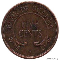 Республика Уганда. 5 центов 1966. Бивни слона.