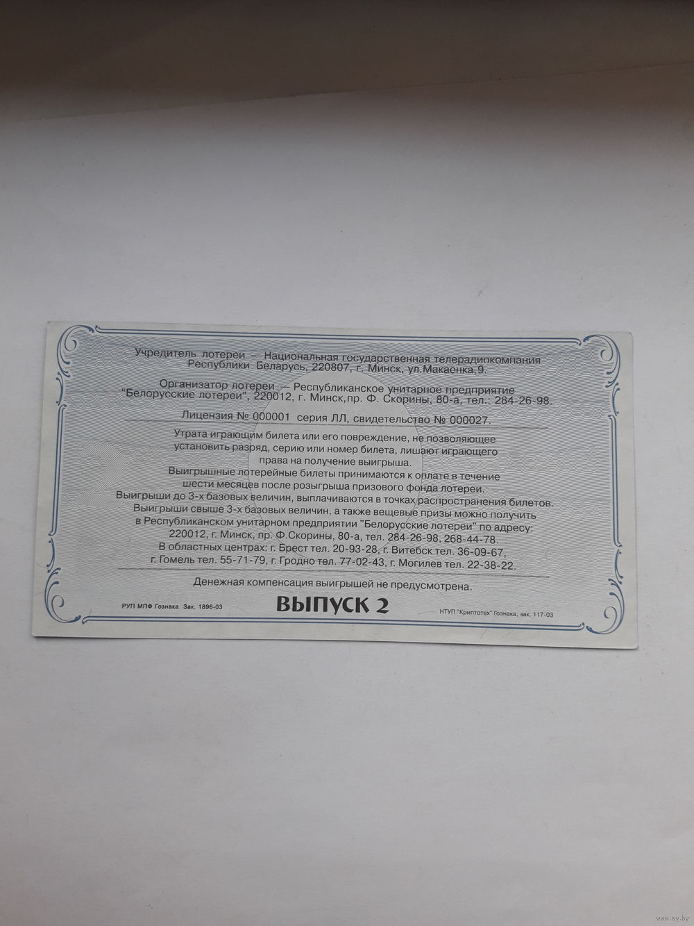 Я согласен с правилами аукционов и покупаю лот за 1,50 бел. руб.
