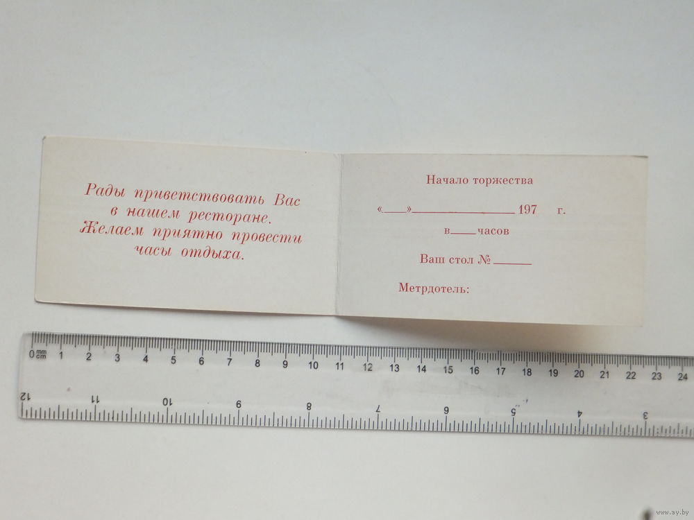 Ресторан Юбилейный документ Минск 1970-е