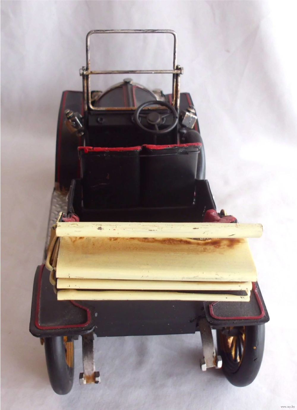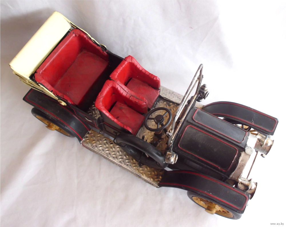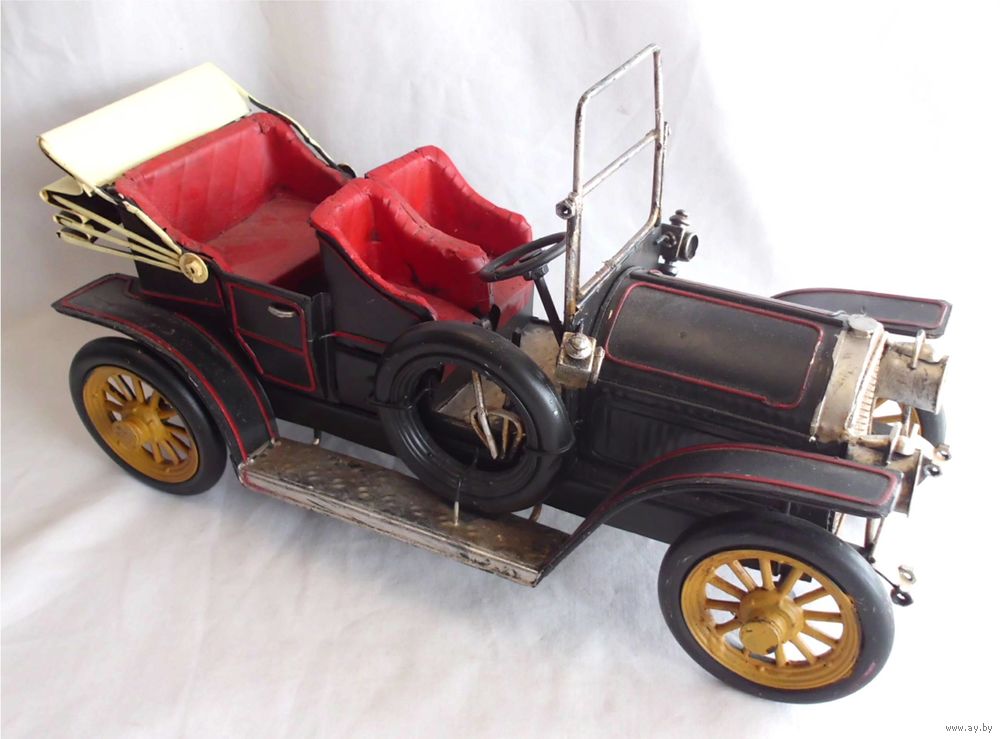 Собранная вручную копия ретро-автомобиля "Ford Roaster". Тяжелая и красивая модель. Прекрасный подарок человеку, увлеченному ретро машинами, а также и тем, кто оформляет свой интерьер в авто-стиле. Отличное оформление витрины авто-салона.