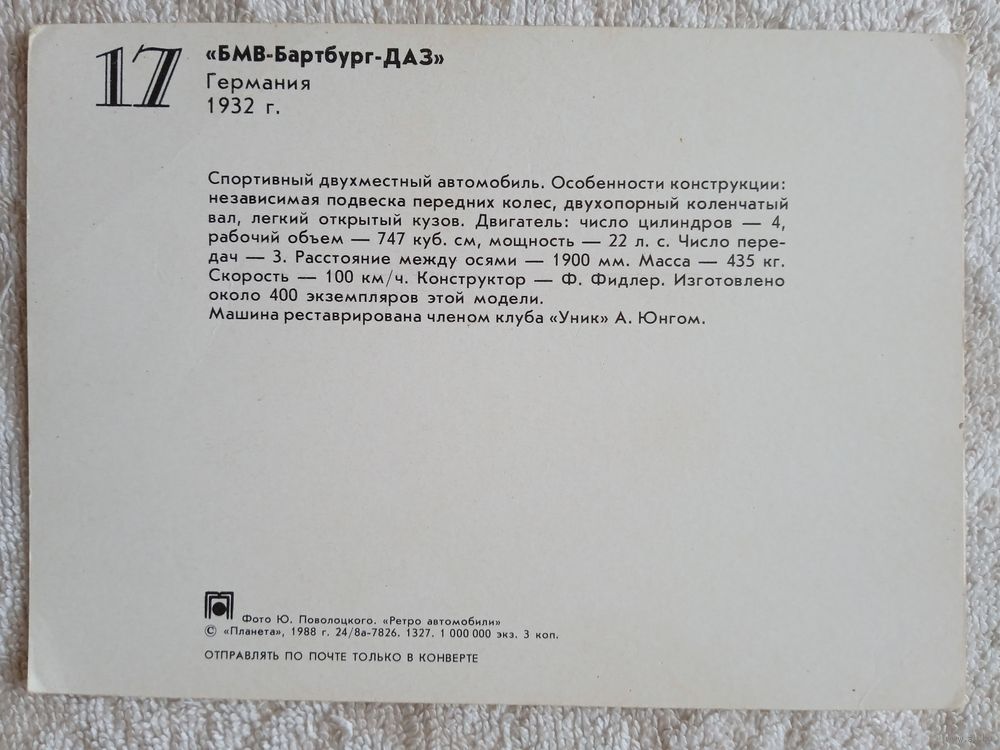 Ретро автомобили. БМВ-Бартбург-ДАЗ