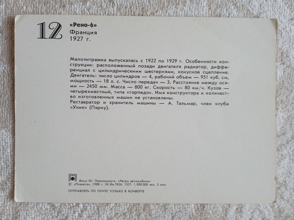 Ретро автомобили. Рено-6