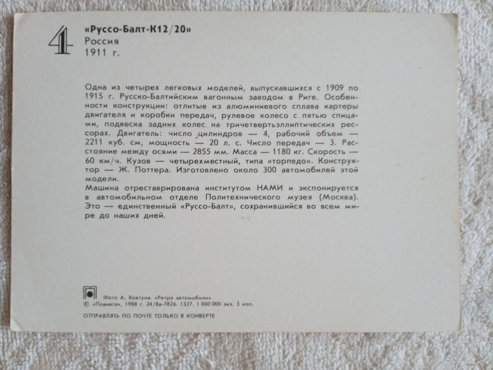 Ретро автомобили. Руссо-Балт-К12/20