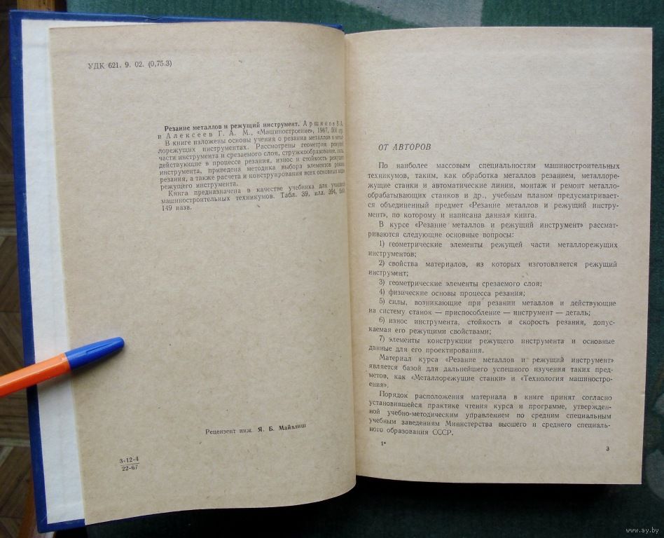 В книге изложены основы учения о резании металлов и металлорежущим инструменте. Рассмотрены геометрические элементы режущей часты инструмента и срезаемого слоя, стружкообразование, силы, действующие в процессе резания, износ и стойкость режущего инструмента; приведены методика назначения элементов режима резания, а также материалы по расчету и конструированию наиболее распространенных рядов режущего инструмента.