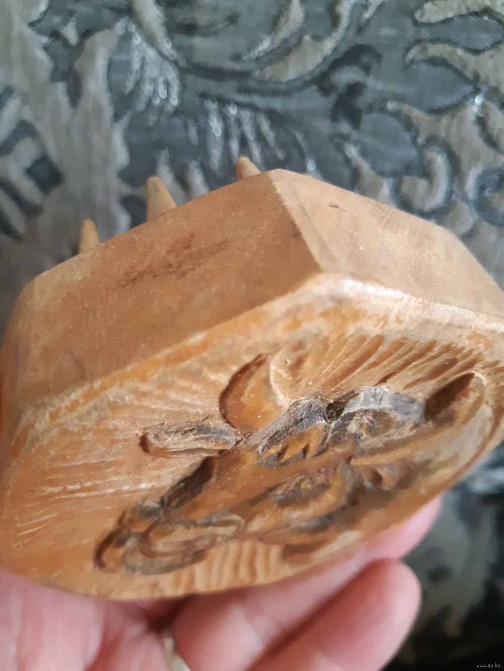 Интересная необычная штуковина с ручной резьбой в виде бычка, с обратной стороны- шипы.