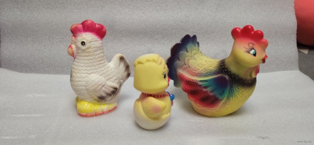 Резиновые игрушки. Петушок, цыпленок, курочка. 16