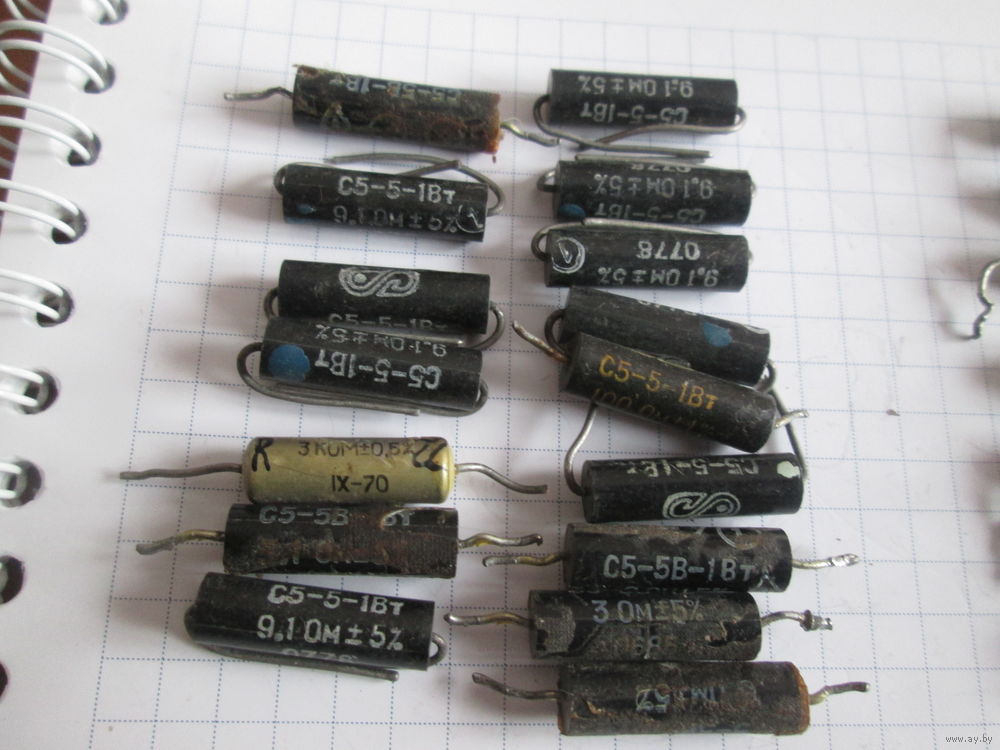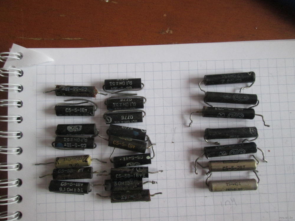 | Есть: 1Вт-16 шт.3ком(1),100ом(1),82ом(1),9.1ом(8),5.1ом(1),3.0ом(3),2.0ом(1).2Вт-7шт.300ом(1),4.7ом(2),3.6ом(2),2.0ом(2). | |