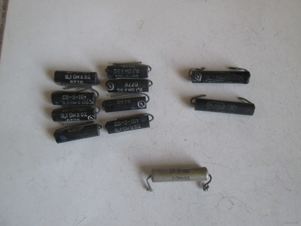 | Есть 23 шт.С5-5в-1вт. 9.1ом ( 8шт),100ом(1шт),3ом(3шт),5.1 ом(1шт)82ом(1шт),2ом(1шт),3ком(1шт),С5-5В-2Вт 4.7ом (2шт) ,300ом ( 1шт),3.6ом(2шт),С5-5-2вт(жел.корп.)2ом(1шт). 2ом 1шт. | |