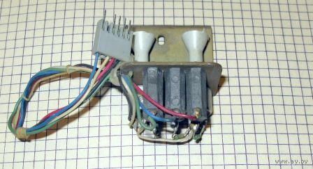 В составе блока 2 переменных резистора СП4-1 (22 кОм и 10 кОм), 3 резистора ВСа, 3 монтажных стойки, соединительный жгут, 2 ручки управления, кронштейн блока. В телевизоре данный блок подключался к модулю цветности для корректировки цветового тона.