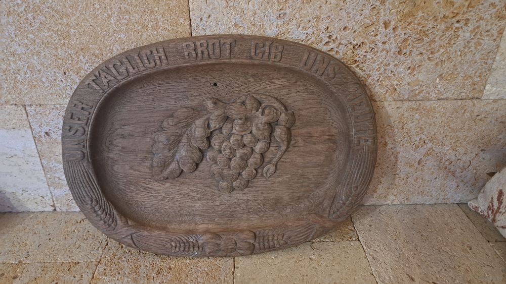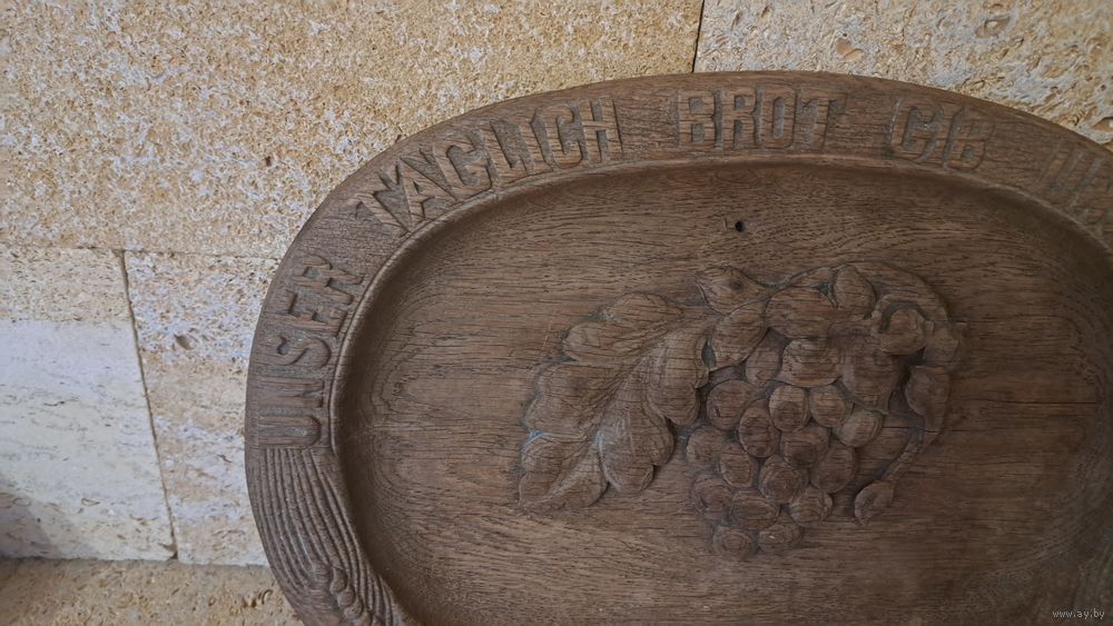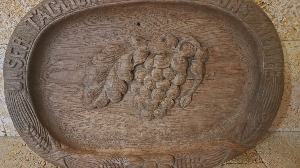 Интересный предмет. Датированный. Перевод с немецкого гласит - ХЛЕБ НАШ НАСУЩНЫЙ ДАЙ НАМ СЕГОДНЯ. Материал дуб. Смотрите также и на другие мои лоты. Всегда много интересного в продаже. КУПЛЮ ИКОНЫ. КУПЛЮ УГОЛЬНЫЕ САМОВАРЫ. КУПЛЮ СТАТУЭТКИ И ДРУГОЙ АНТИКВАРИАТ. КУПЛЮ ЧАСЫ КОРПУСА С МАРКИРОВКОЙ АУ. КУПЛЮ МОНЕТЫ, ЗНАКИ, НАГРАДЫ.