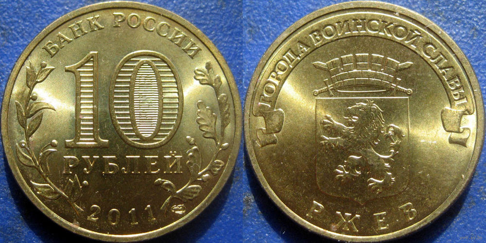 РФ. 10 рублей 2011 года. ГВС. Ржев. аUNC.