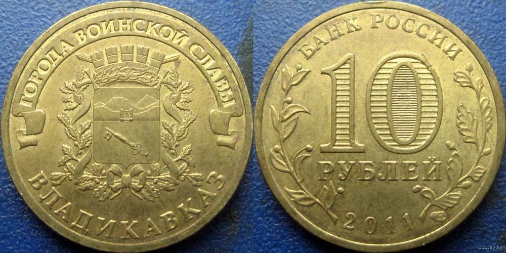 РФ. 10 рублей 2011 года. ГВС. Владикавказ.