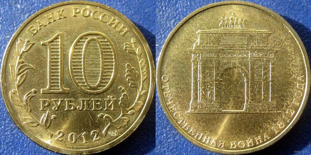 РФ. 10 рублей 2012 года. 200 лет победы в Отечественной войне 1812 года. UNC.