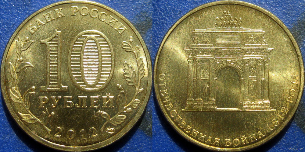 РФ. 10 рублей 2012 года. 200 лет победы в Отечественной войне 1812 года. UNC.