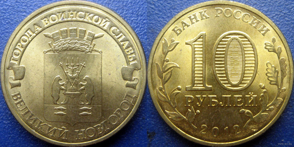 РФ. 10 рублей 2012 года. ГВС. Великий Новгород .