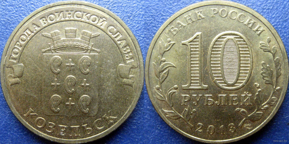 РФ. 10 рублей 2013 года. ГВС. Козельск.