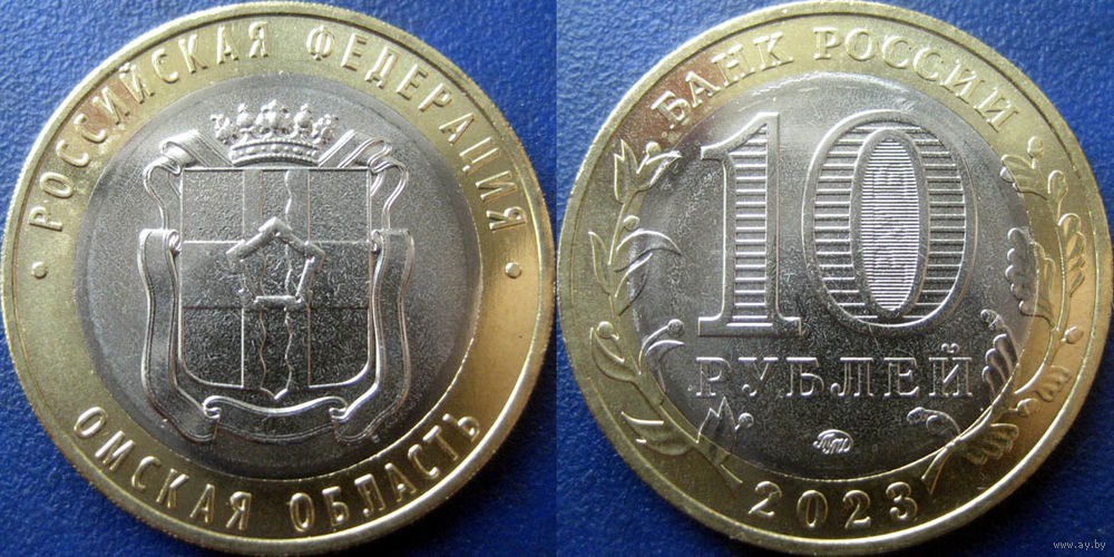 РФ. 10 рублей 2023 Омская область. UNC