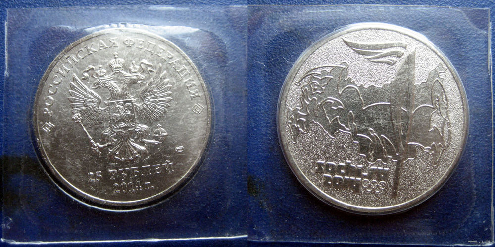 РФ. 25 рублей 2014. Олимпиада в Сочи. Факел. В блистере. UNC