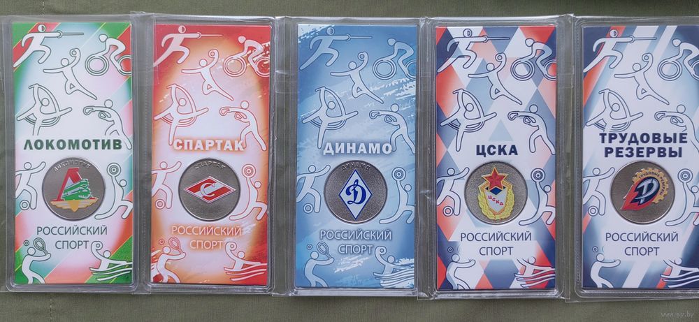 Монеты посвящены Российским физкультурно-спортивным обществам. Это официальный выпуск Банка России . Монета отчеканена из медно-никелевого сплава, имеет цветное исполнение — на реверсе размещено цветное изображение символики спортивных обществ. В оригинальном блистере.
