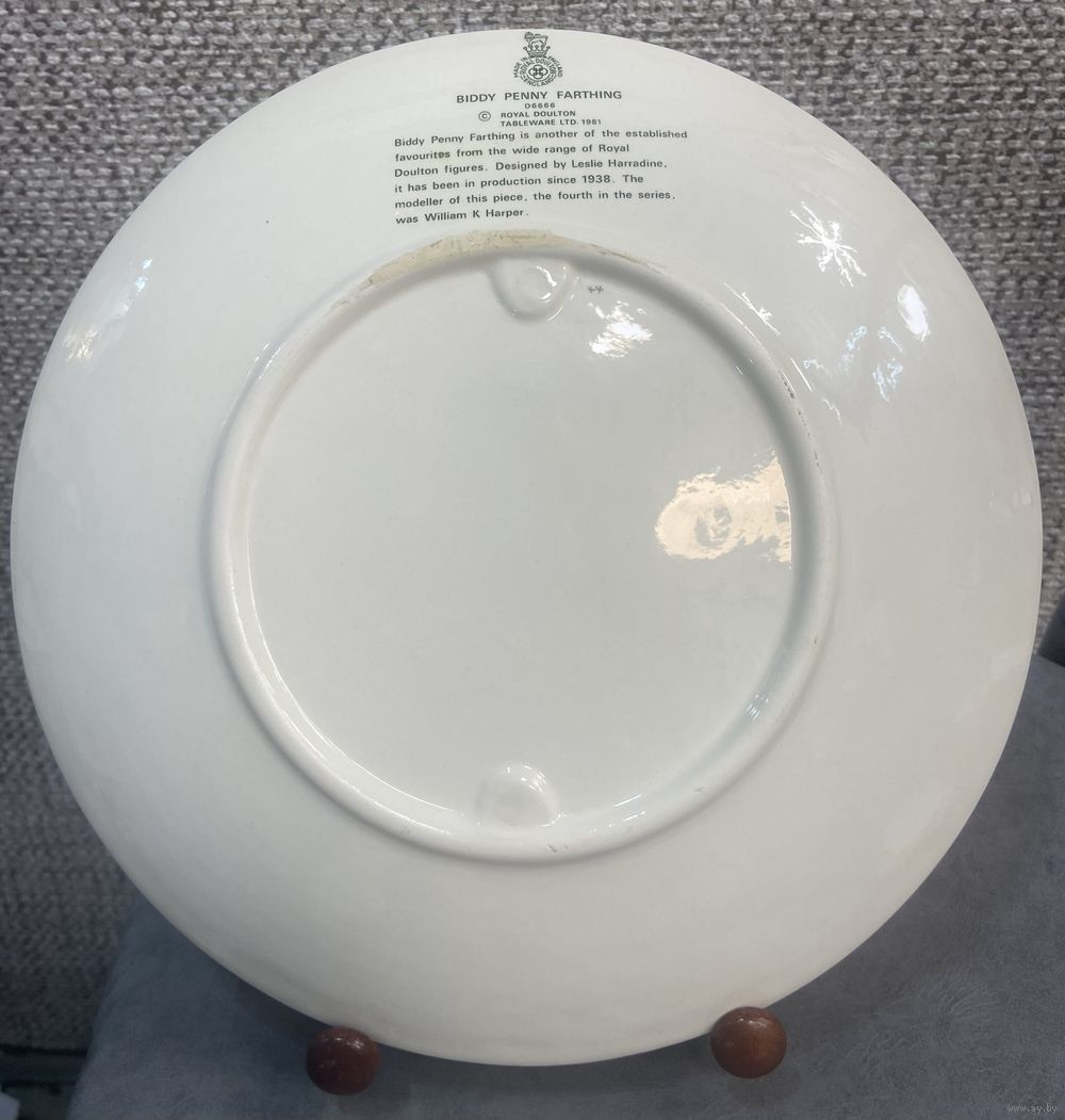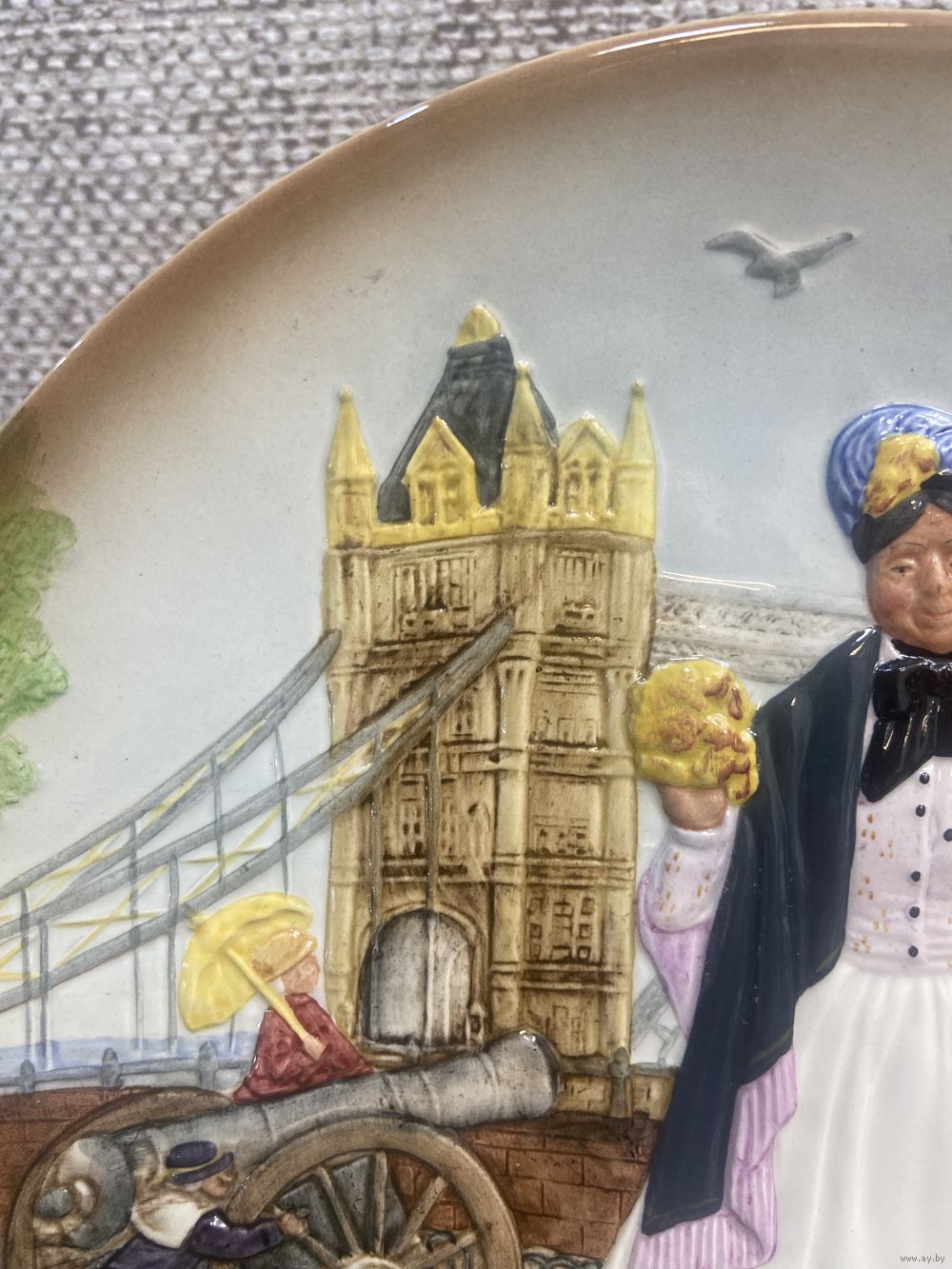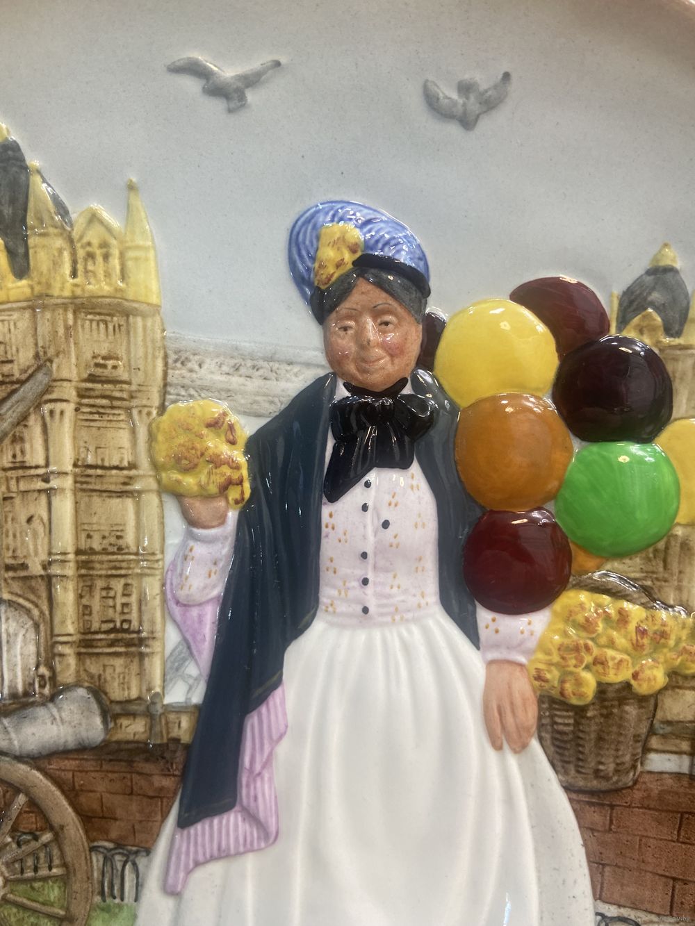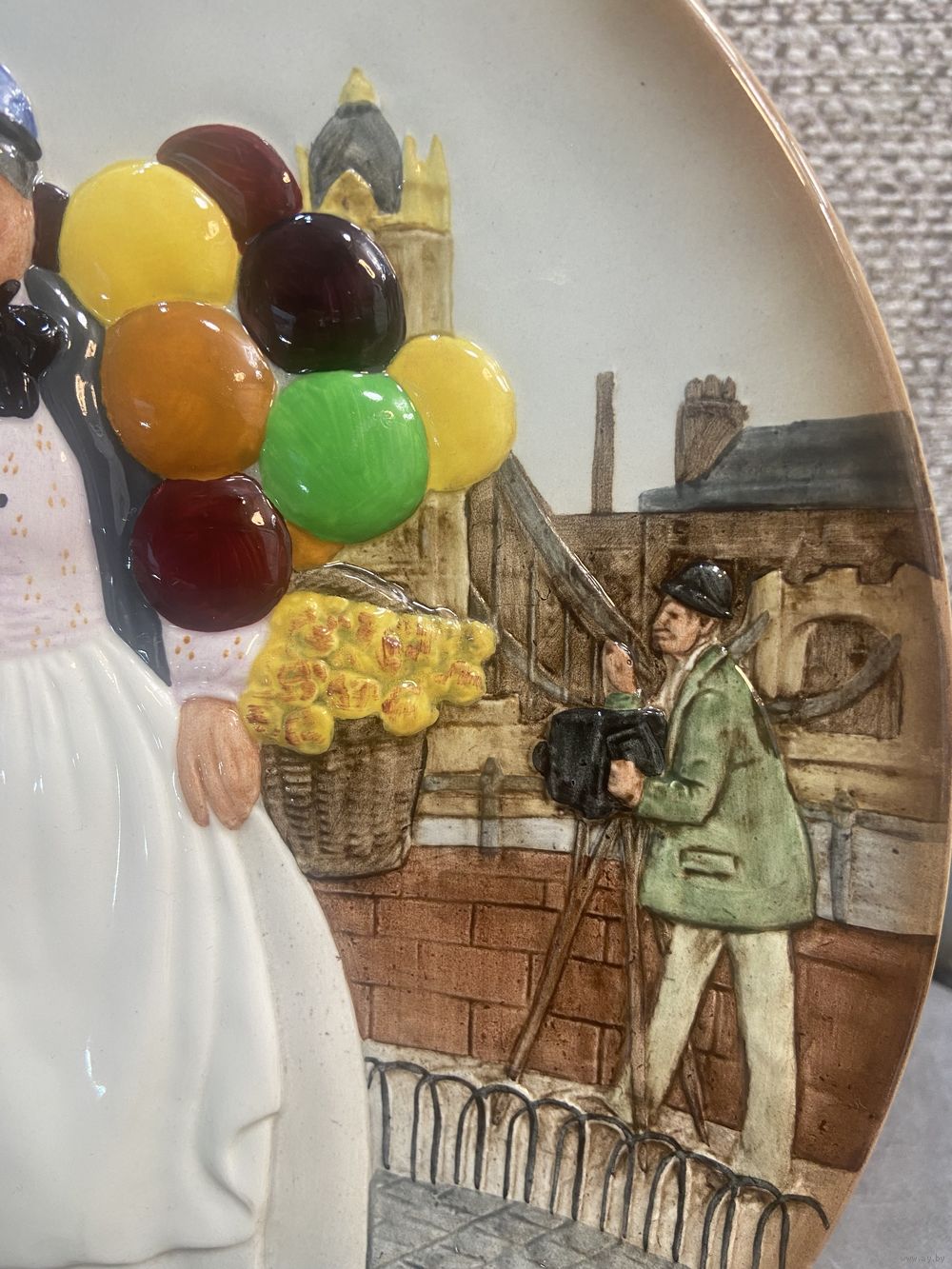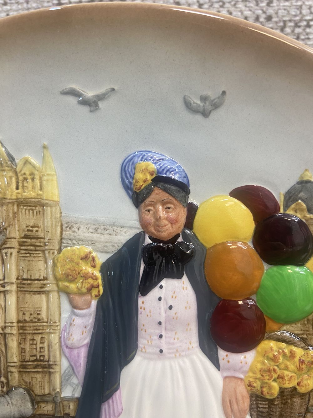 Рифленая декоративная тарелка Royal Dolton. Продавщица воздушных шаров. Англия. 1981 год. 26 см