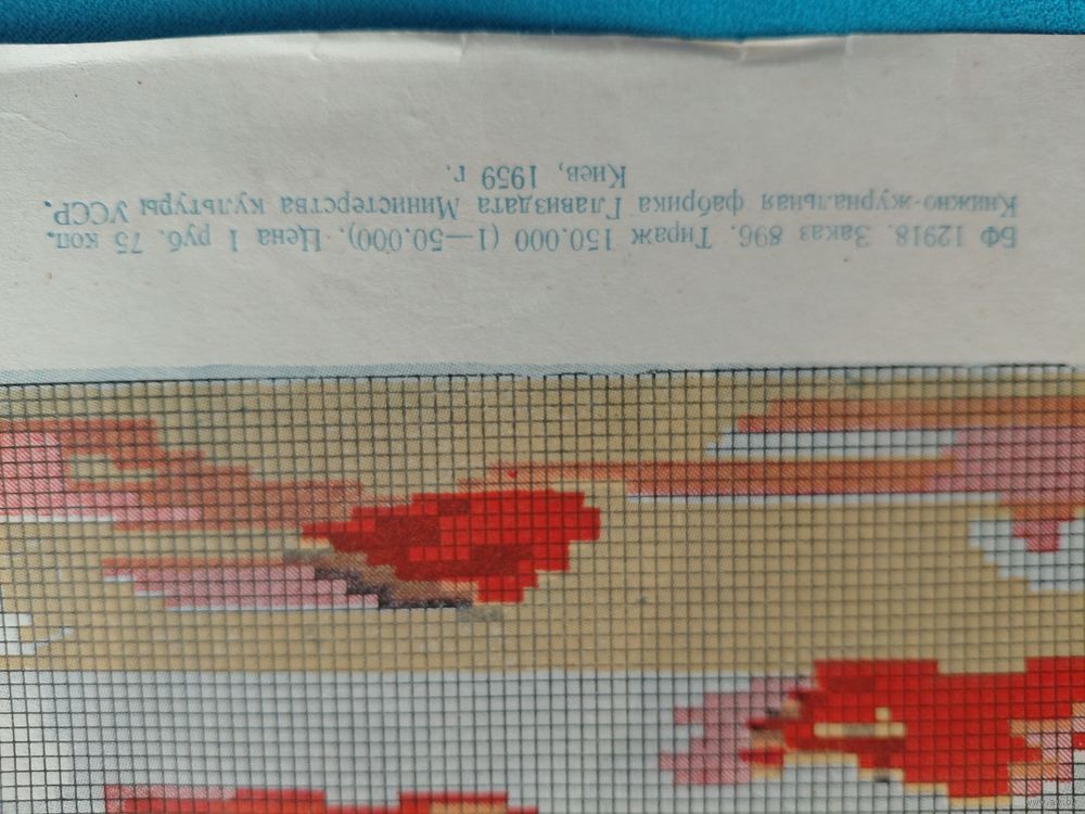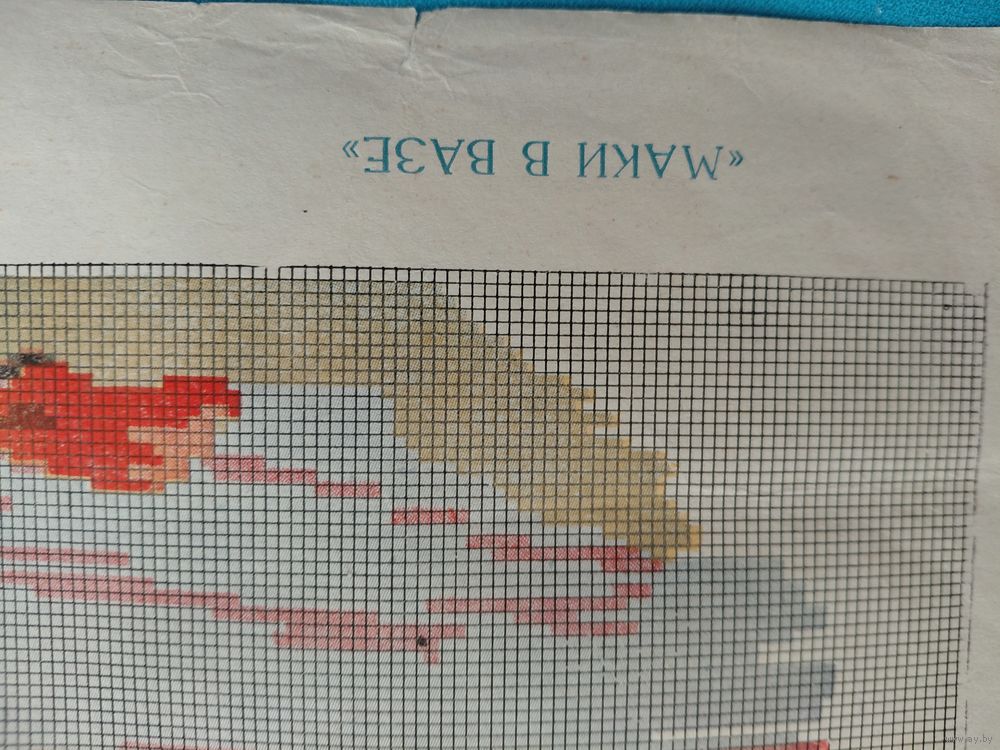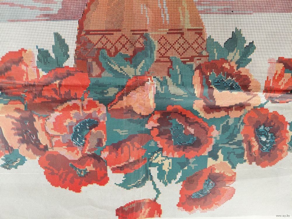 Рисунок для вышивки болгарским крестом маки в вазе 1959 год 46x38