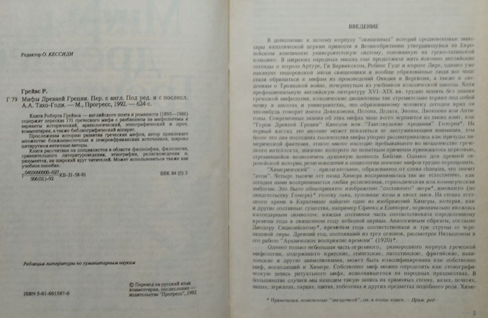 Большой энциклопедический формат. 624 стр. Работа английского поэта и прозаика Роберта Грейвса (1895 - 1986) содержит изложение и подробное толкование различных вариантов 171 греческого мифа, с разбиением на мифологемы и варианты комментариев: исторический, археологический, этнографический и прочие, сопровождающееся множеством ссылок на античные источники. Благодаря постоянной перекличке родственных мифов (прослеживается история развития греческих мифов с привлечением множества ближневосточных и североафриканских источников) достигается сближение отдельных сюжетов, приводящее в результате к реконструкции масштабного мономира. Особую содержательную полноту книге придают феноменальная эрудиция автора, широкое использование им материалов сравнительной мифологии. Издание, широко цитируемое античными авторами, снабжено именным указателем и библиографическим аппаратом.