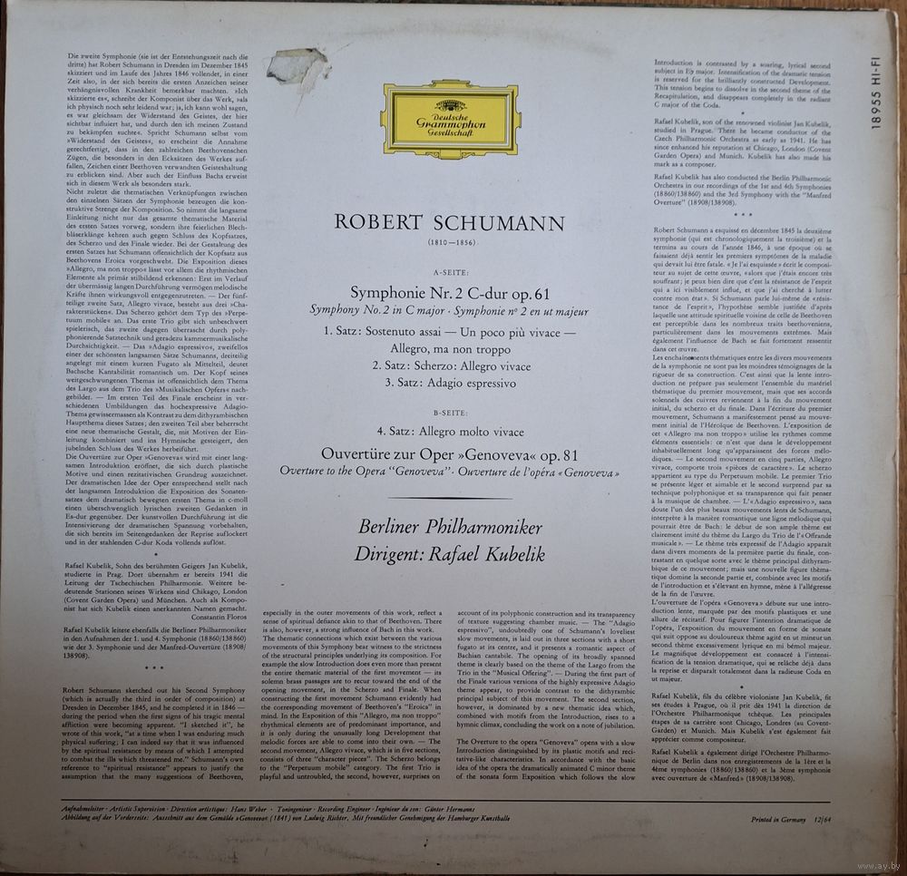 Robert Schumann - Rafael Kubelik, Berliner Philharmoniker – Symphonie Nr. 2 / Genoveva Ouverture.