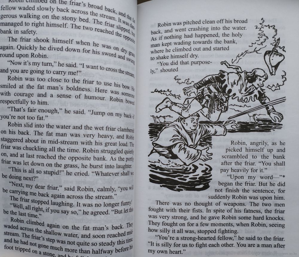 На англ. и рус. яз. Тираж 2000 экз. 384 стр. Предлагаемая книга даст возможность познакомиться с приключениями благородного разбойника Робин Гуда на языке оригинала, а затем проверить свое понимание текста, прочитав перевод произведения на русский язык. Читая и слушая текст на английском языке, сравнивая его с переводом на русский, вы улучшите свои навыки чтения, а также сможете повысить уровень восприятия иностранной речи. Предлагаемый текст оригинала не адаптирован, однако история о бесстрашном разбойнике и его знаменитых удальцах изложена достаточно простым языком и не вызовет затруднений у изучающих английский язык.