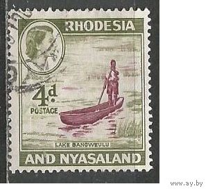 Родезия и Ньясаленд. Королева Елизавета II. Туземец на лодке. 1959г. Mi#24.