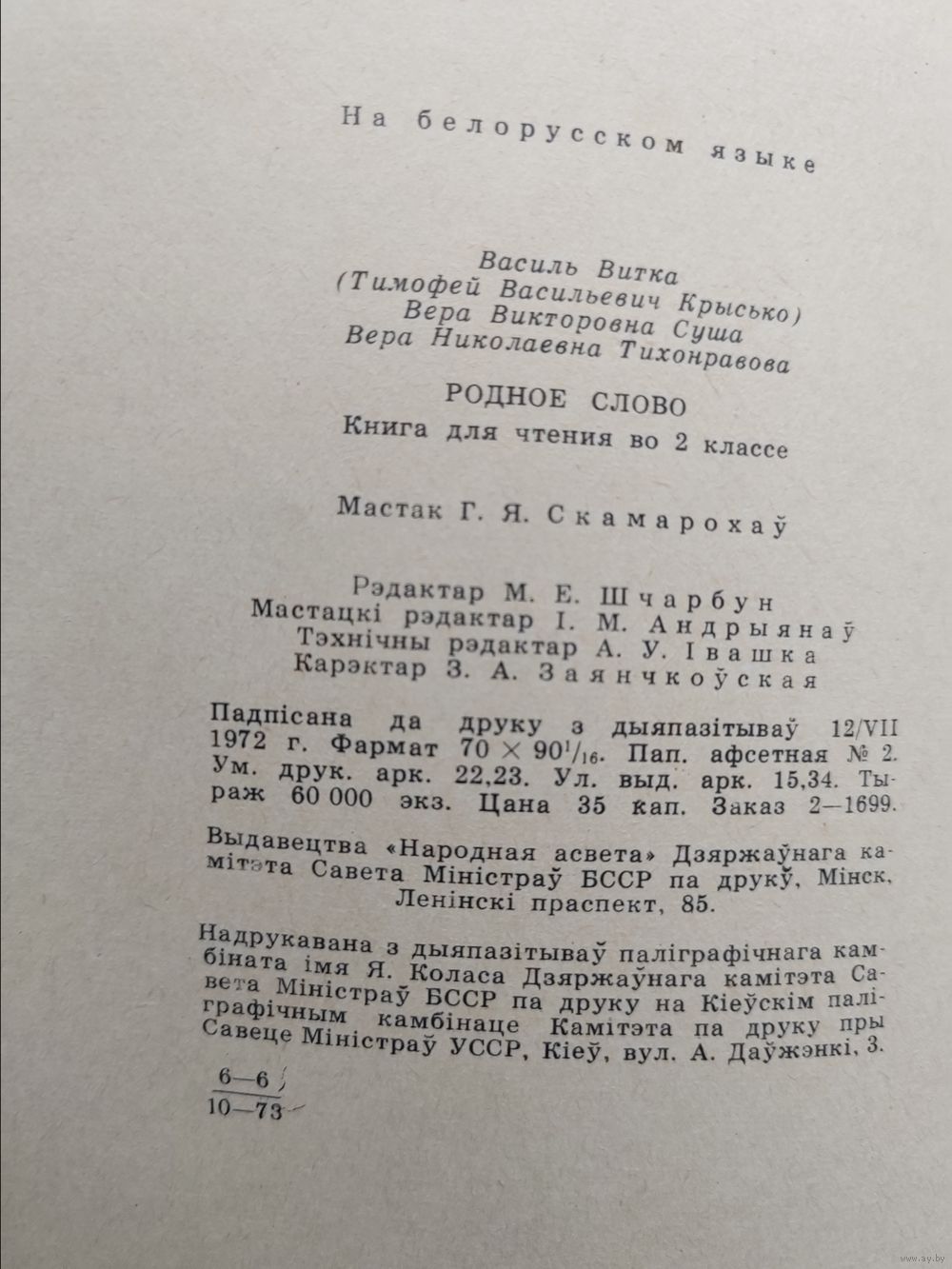 Роднае слова. 1973 г. Издательство БССР. Напечатано в УССР.