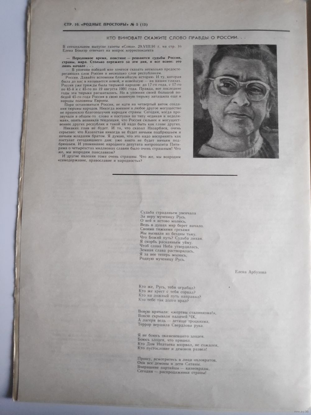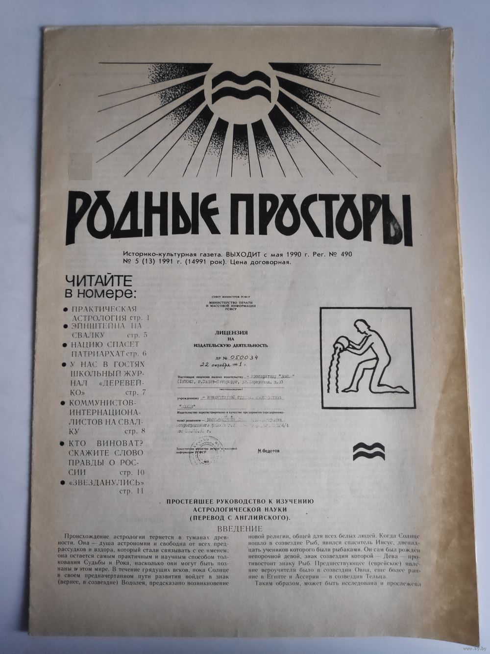 Родные просторыИсторико-культурная газета, ВЫХОДИТ с мая 1990 г. Per. № 490 № 5 (13) 1991 г. (14991 рок). Цена договорная.