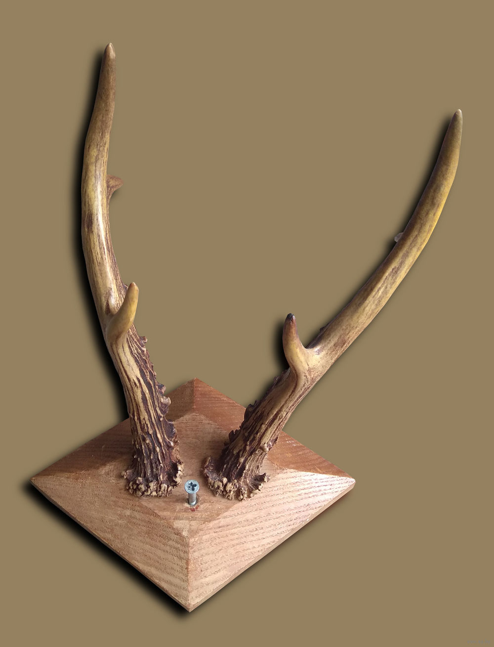 Рога косули с черепом на деревянной основе, есть крепление к стене. Высота 19 см, ширина 16 см