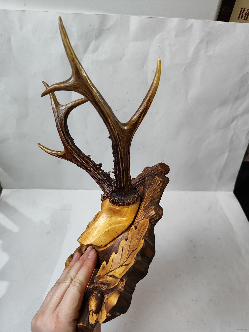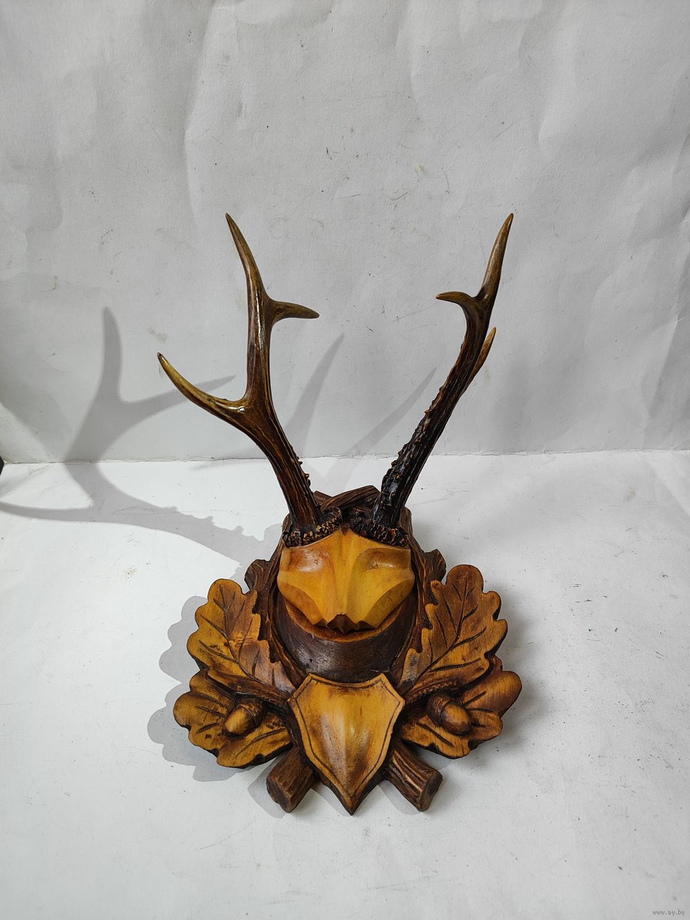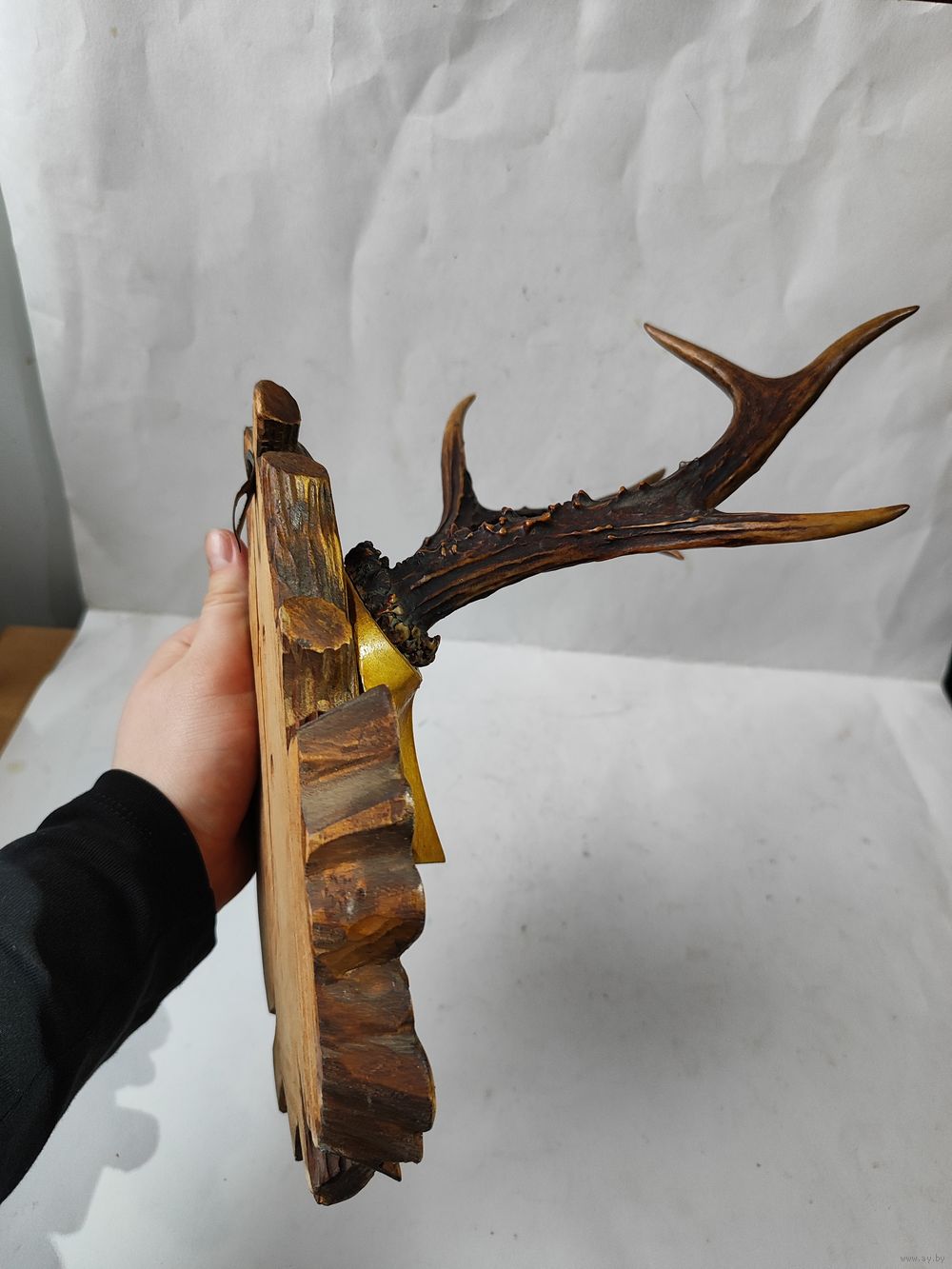 Размер длинаа-24 см. Высота от основания медальона до кончиков рогов -22 см. Состояние на фото(рога целые без реставраций).