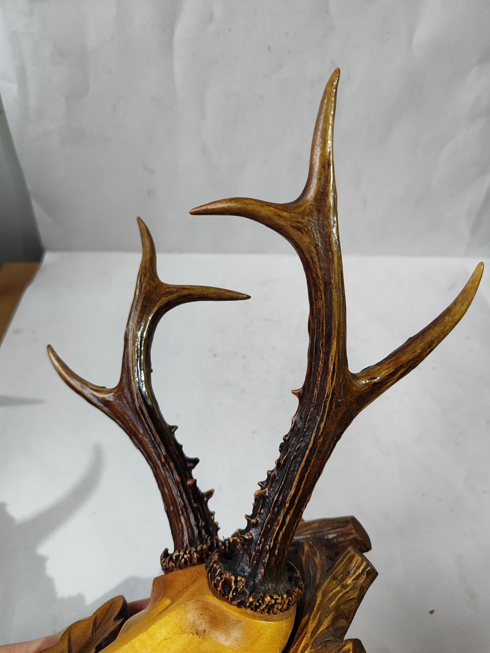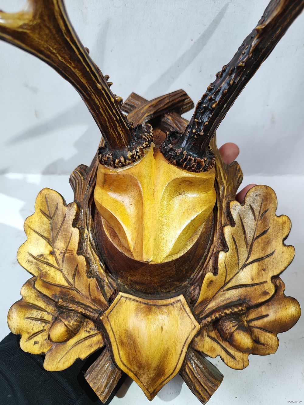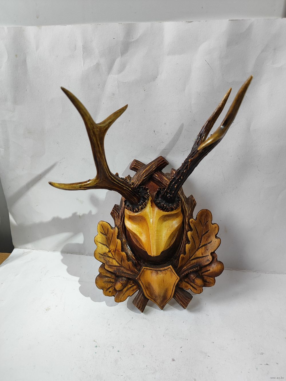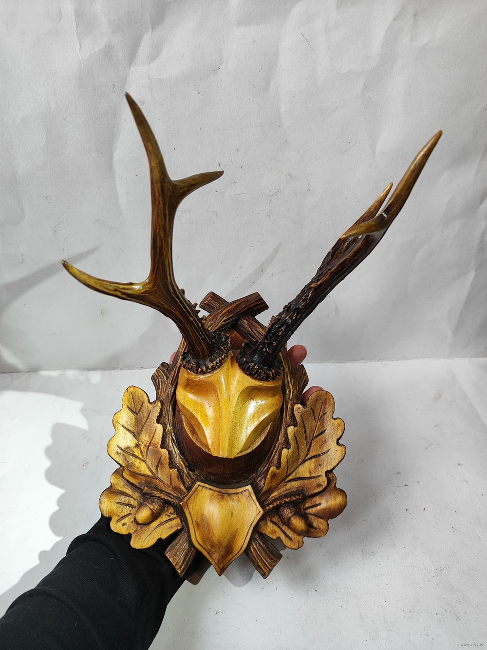 Размер длинаа-24 см. Высота от основания медальона до кончиков рогов -22 см. Состояние на фото(рога целые без реставраций).