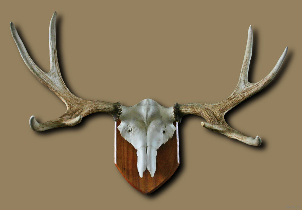 Рога лося с черепом на деревянной основе, есть крепление к стене. Высота (с черепом) 61 см, ширина 87 см