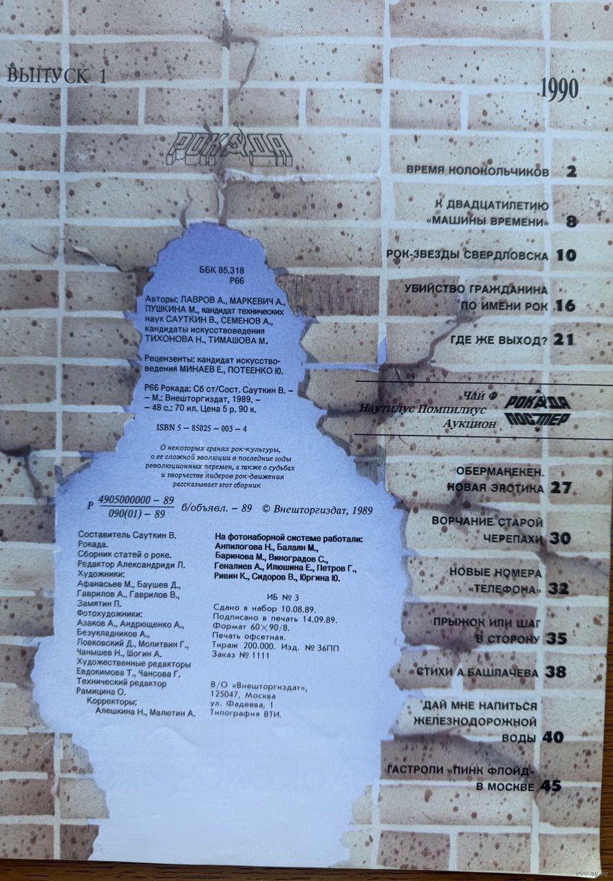 РОКАДА 1990 номер 1 журнал БГ Башлачёв Мааревич шевчук аукцион чай-ф