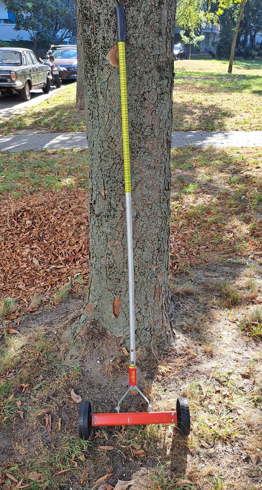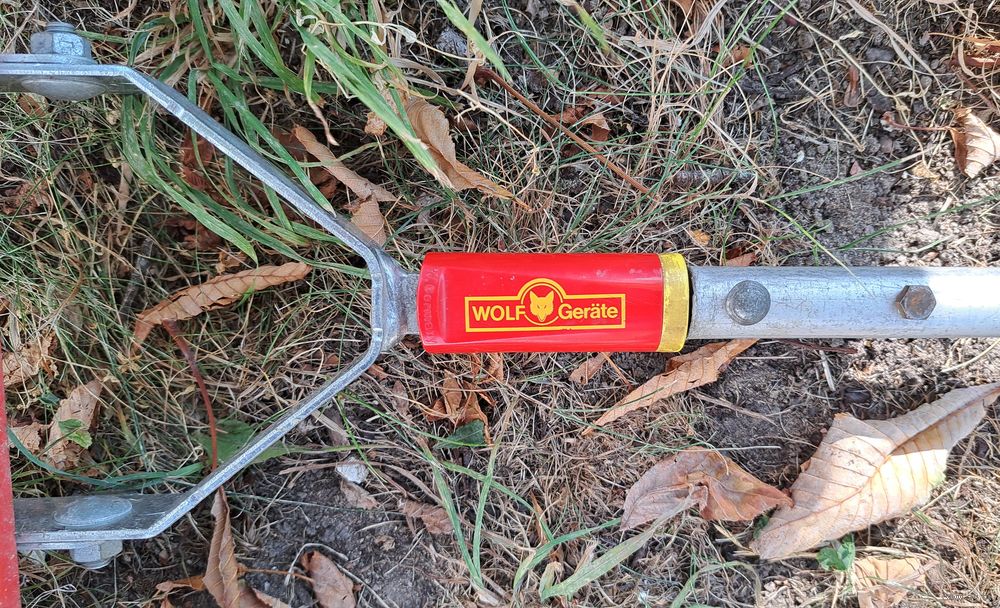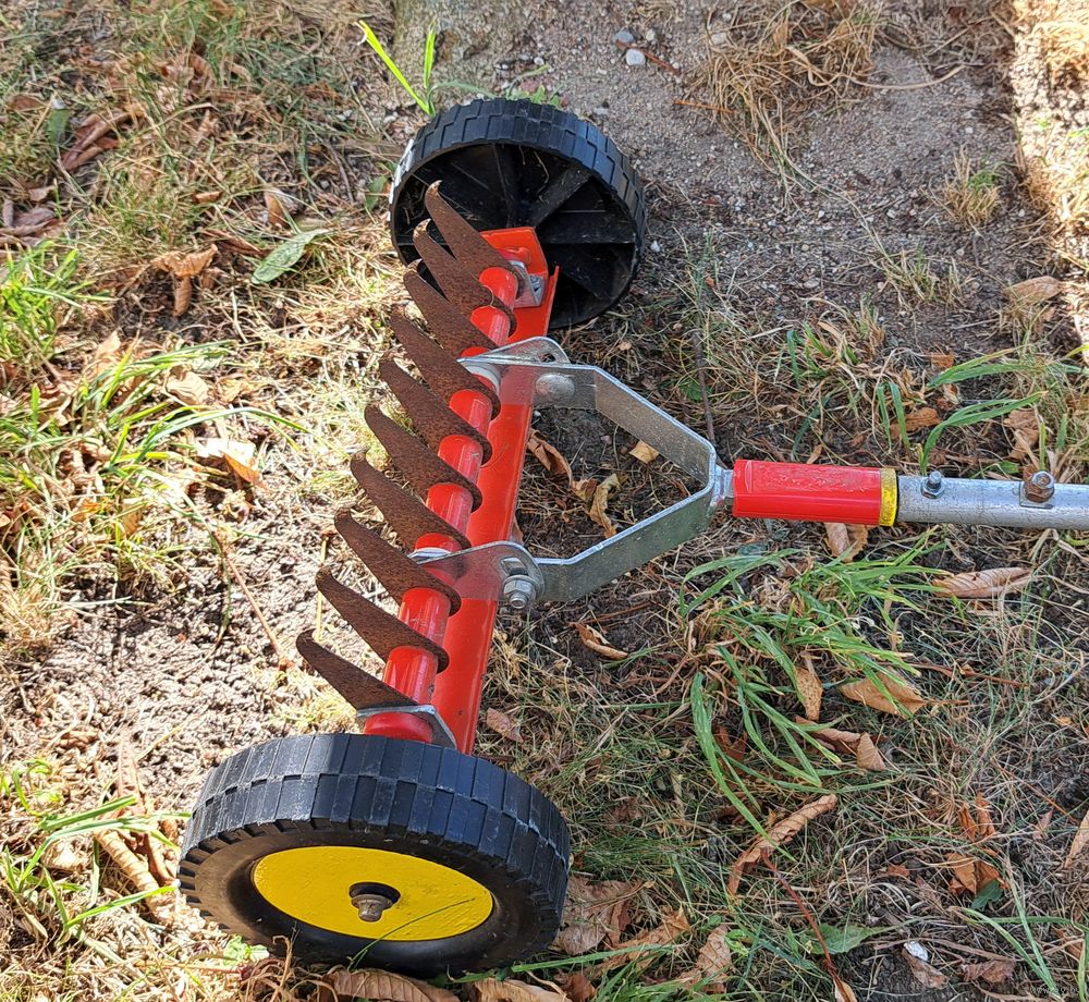 Роликовые грабли для ухода за газоном WOLF - Garten Multi - Star Германия ХХ век, длина 1.6 м., ширина рабочей части 30 см. Назначение: вычесывание старой травы, мха и сорняков с газона, а также для аэрации почвы.
