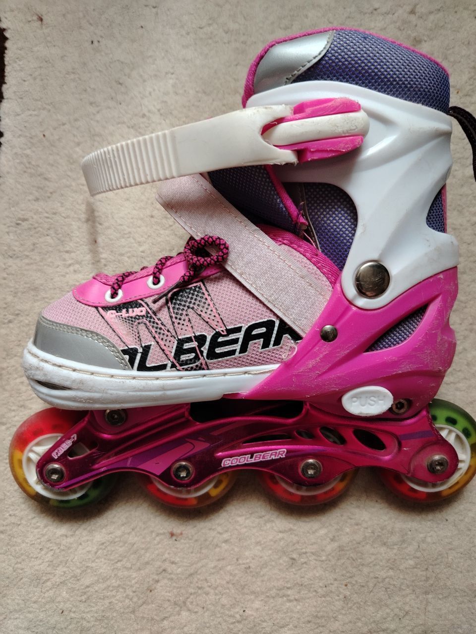 Роликовые коньки детские. Расцветка для девочек. Раздвижные под размер 34-35-36-37. Подшипники ABEC-7. Всё работает, крутится, светится.