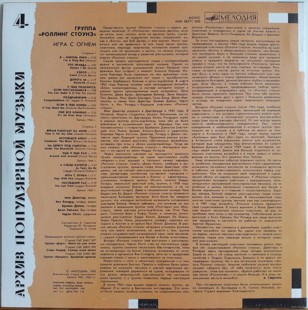 Rolling Stones LP Play With Fire белый пятак 1990 Riga