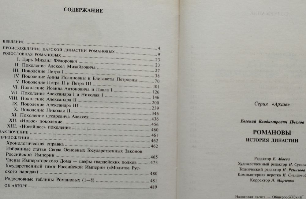 Цена за 1 том. Большой формат. Тираж 5000 экз. 498 стр. В книге вне пагинации страниц вклеены две тетради по 8 листов каждая с цветными и чёрно-белыми иллюстрациями. Когда-то 16-летний мальчик стал русским царем и основал одну их великих династий. Через 300 лет она включала 60 человек, а еще через четыре года лишилась трона. В марте 1917 года Романовы стали России не нужны. Но они не исчезли. Их история продолжается и сейчас, несмотря на то, что три четверти века память о них стиралась. Ныне имена их воскресают из небытия. Кандидат исторических наук Е. В. Пчелов, поставил перед собой цель — вспомнить всех Романовых, в том числе и живущих ныне, рассказать о той огромной роли, которую представители этой фамилии сыграли в истории России.