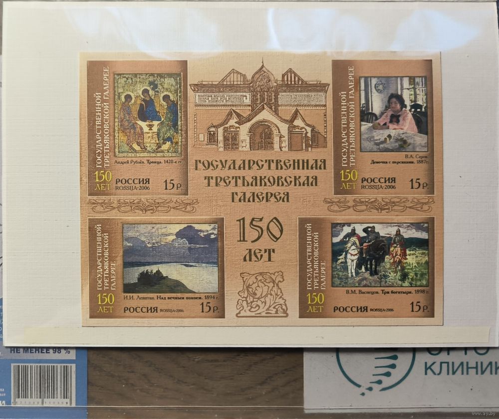 Российская Федерация. 150 лет Государственной Третьяковской галереи. Сувенирный набор с марками №№ 1106-1109, блок № 70. (Загорский).