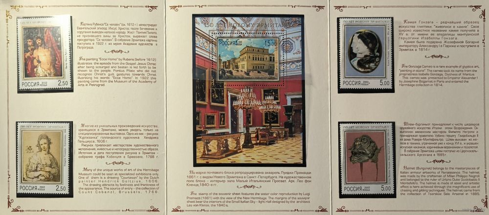 Российская Федерация. 150 лет Новому Эрмитажу. Сувенирный набор №№ 729-733, блок № 39. (Загорский).