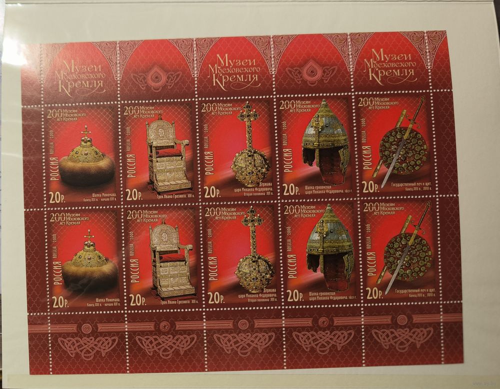 Российская Федерация. 200 лет Музеям Московского кремля. Сувенирный набор. Малый лист с марками №№1088-1092 (Загорский).
