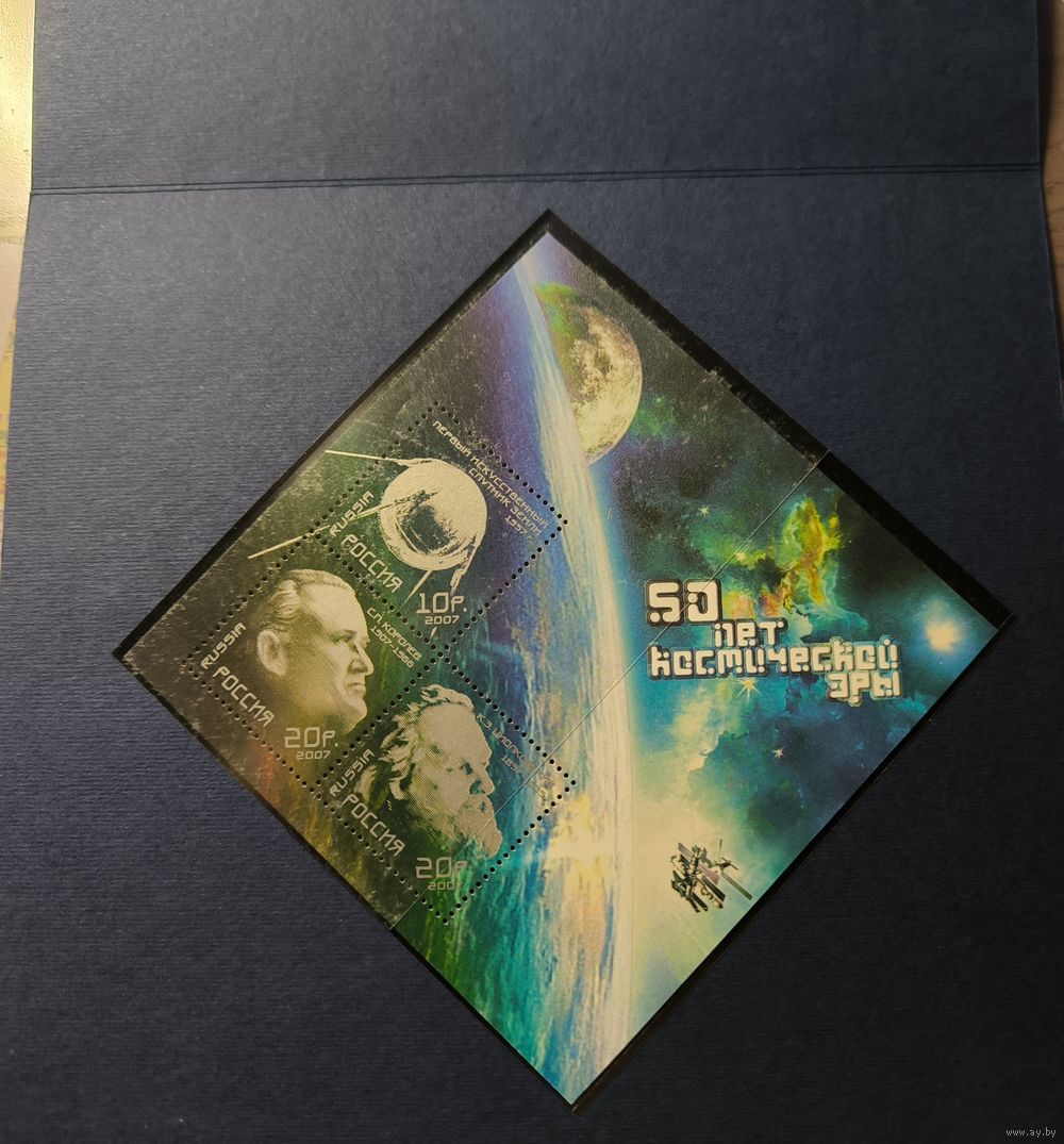 Российская Федерация. 50 лет Космической эры. Сувенирный набор с марками №№ 1173-1175, блок № 77. (Загорский).