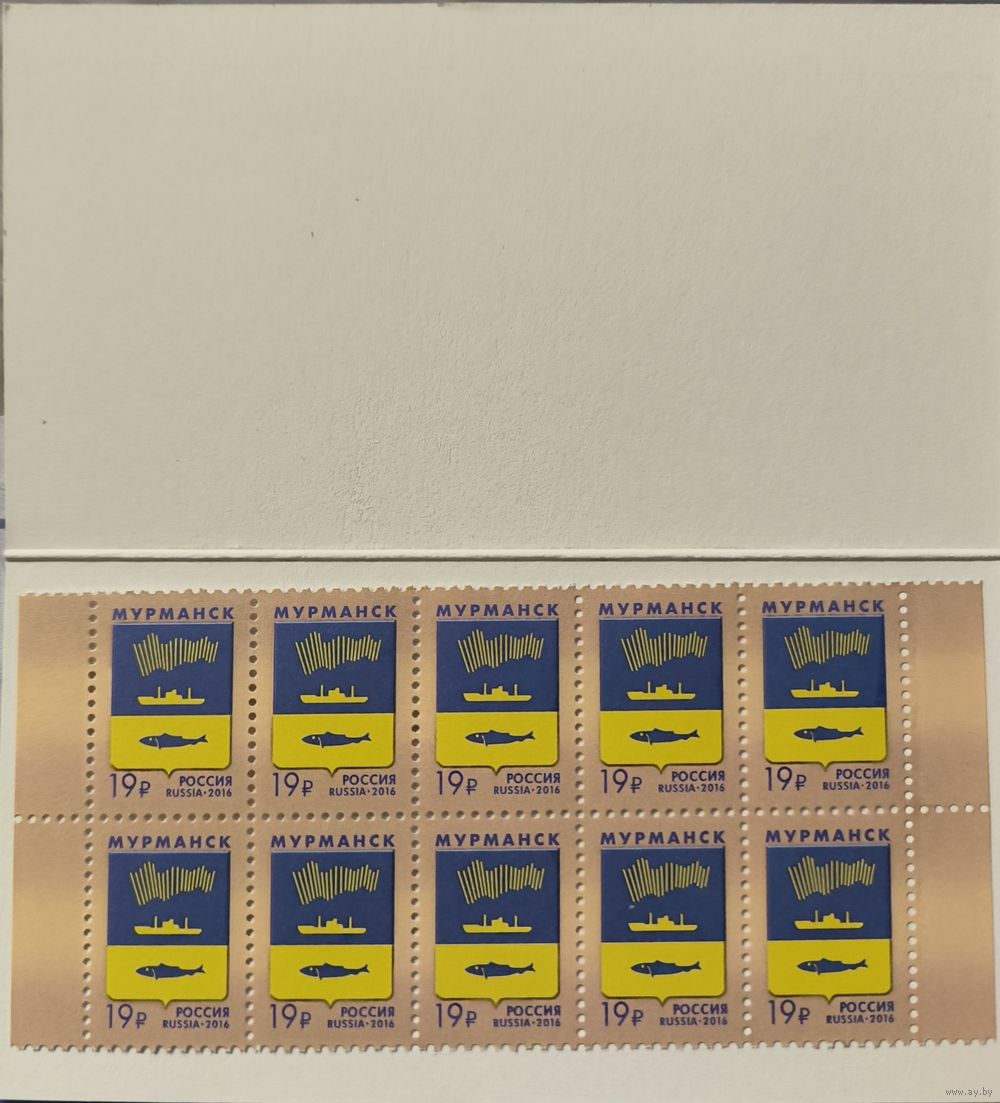 Российская Федерация. Герб города Мурманска. Стандартный выпуск. Сувенирный набор № 2131 (сцепка из 10 марок) (Загорский).