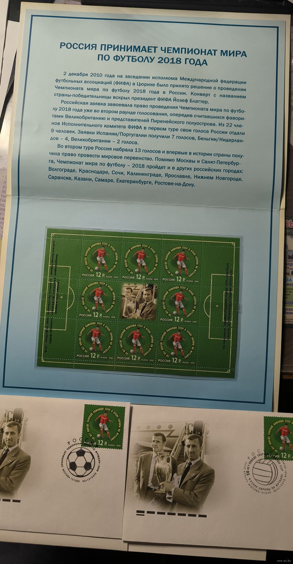 Российская Федерация. Россия примет ЧМ по футболу в 2018г. Сувенирный набор. Малый лист с надпечаткой. Марка № 1458. (Загорский).