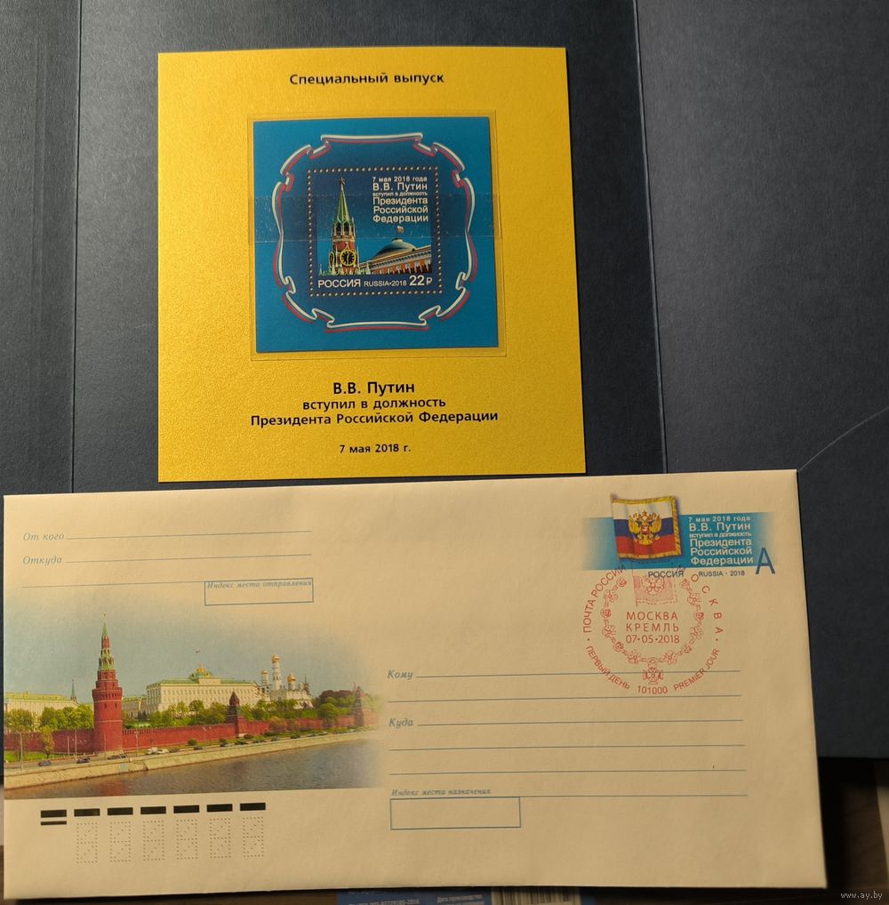 Российская Федерация. Вступление В.В.Путина в должность Президента РФ. Сувенирный набор. Бдок на золотой фольге с маркой № 2343 (Загорский).