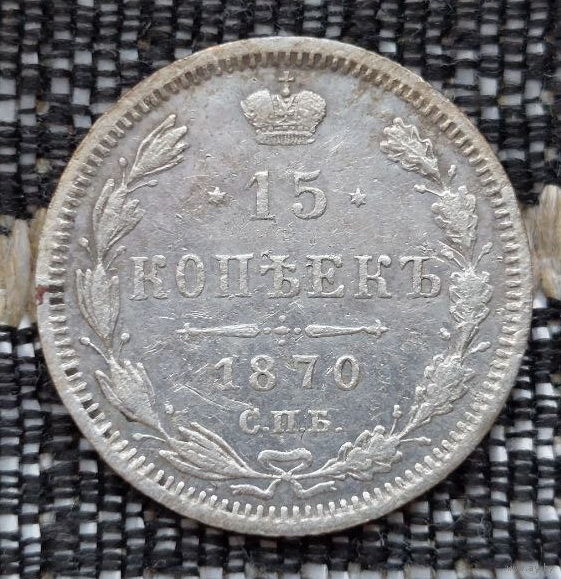 Российская Империя 15 копеек 1870 год. Александр II. ЕМ/HI. Серебро! Сторгуй за свою цену, предложи обмен!