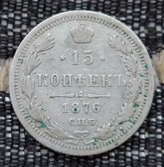 Российская Империя 15 копеек 1876 год. Александр II. ЕМ/HI. Серебро! Сторгуй за свою цену, предложи обмен!
