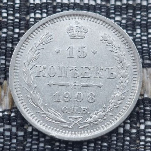 Российская Империя 15 копеек 1908 год. Николай II. СПБ/ЭБ, UNC. Серебро! Сторгуй за свою цену, предложи обмен!